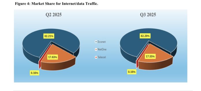 On the mobile side, Econet Wireless Zimbabwe remains the dominant force in the sector. POTRAZ data shows Econet controls approximately 73% of mobile subscribers, 87% of voice traffic, 82% of mobile data usage, and the largest share of national telecoms infrastructure. This scale advantage continues to translate into market leadership despite intensifying competition in data services.